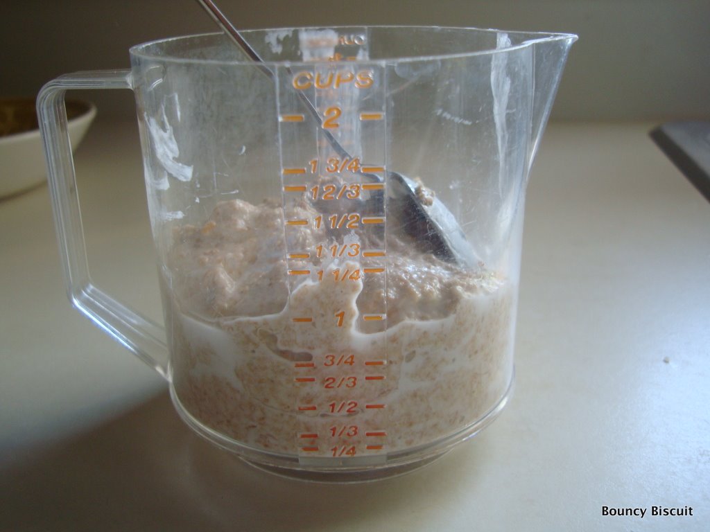 - 1 cup sprouted wheat berries with water (filled to about 1 cup)